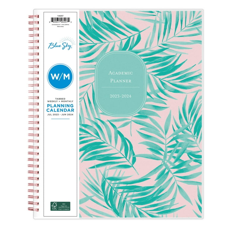 2023 24 Weekly Monthly Planner, 8.5×11, Blue Sky, Palmilla Pink
